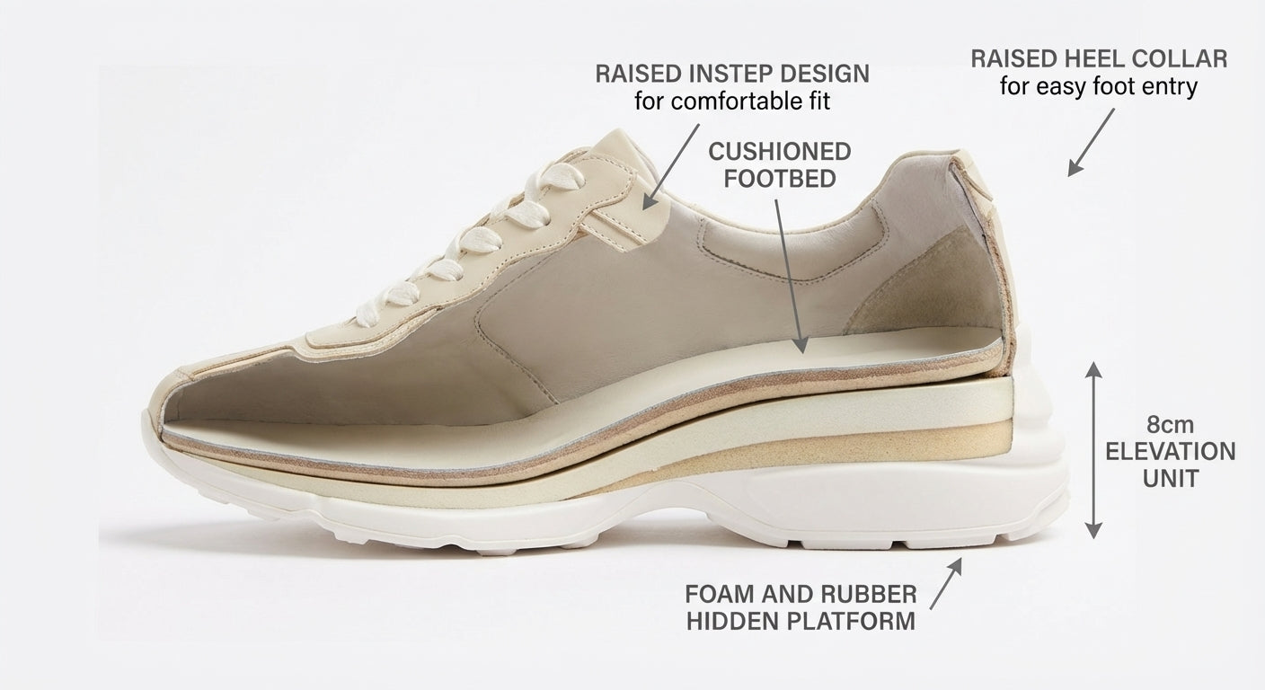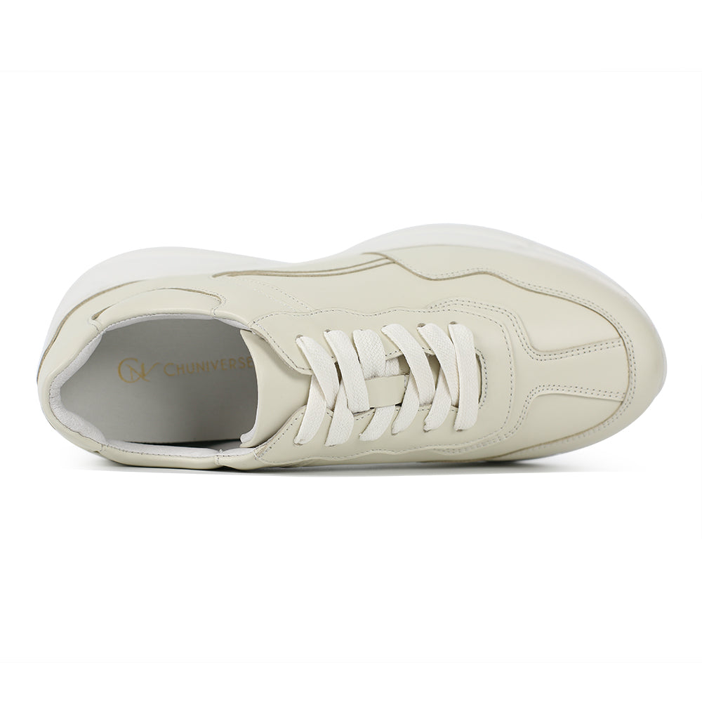 รองเท้าผ้าใบเสริมส้นสำหรับผู้หญิง Chunky Lady สีเบจ 8 cm
