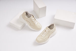 Bold chunky sneakers in versatile beige. Street-style statement piece with maximum +8cm height boost. Trendy platform silhouette that turns heads.