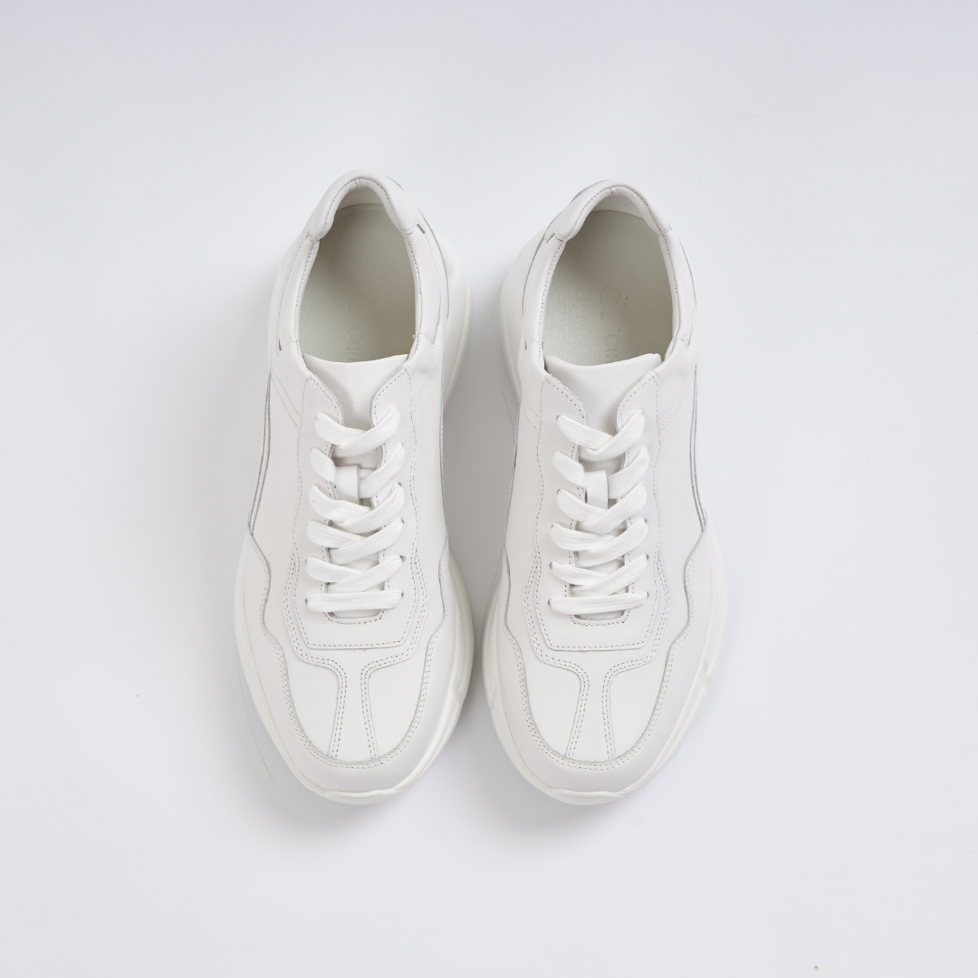 Bold chunky sneakers in clean white. Street-style statement piece with maximum +8cm height boost. Trendy platform silhouette that turns heads.