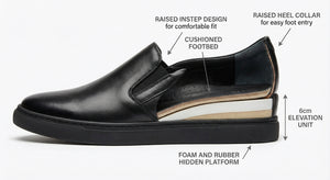 Easy slip-on sneakers in versatile black. No laces needed for effortless style with hidden +5cm height boost. Perfect for everyday wear.